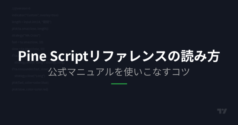 Pineスクリプトのリファレンスを開いたものの、関数が大量に並んでいて何から見ればいいかわからない。英語まじりの説明文に圧倒されて、そっとブラウザを閉じた。そんな経験がある人は少なくないだろう。 TradingViewが … 続きを読む Pineスクリプトリファレンスの読み方|公式マニュアルを使いこなすコツ