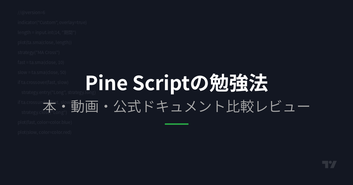 この記事では、現役トレーダー兼Pineスクリプト開発者が、主要な学習リソースをすべて実際に使った上で比較レビューする。自分に合った勉強法がわかれば、最短で「自分のインジケーターを自作できる」レベルに到達できる。